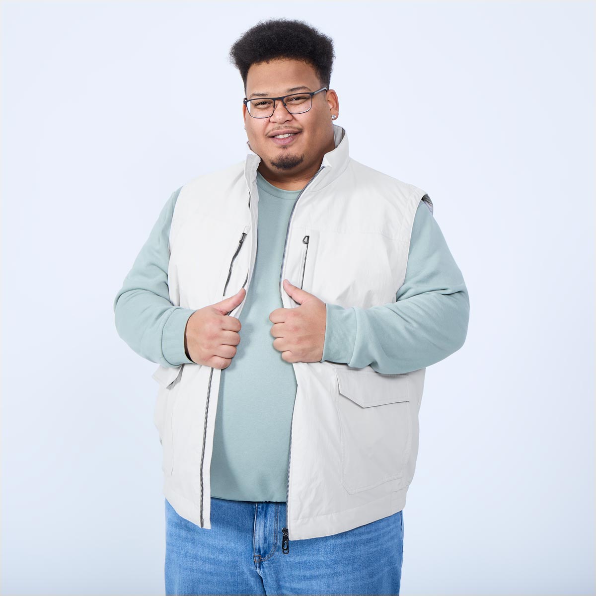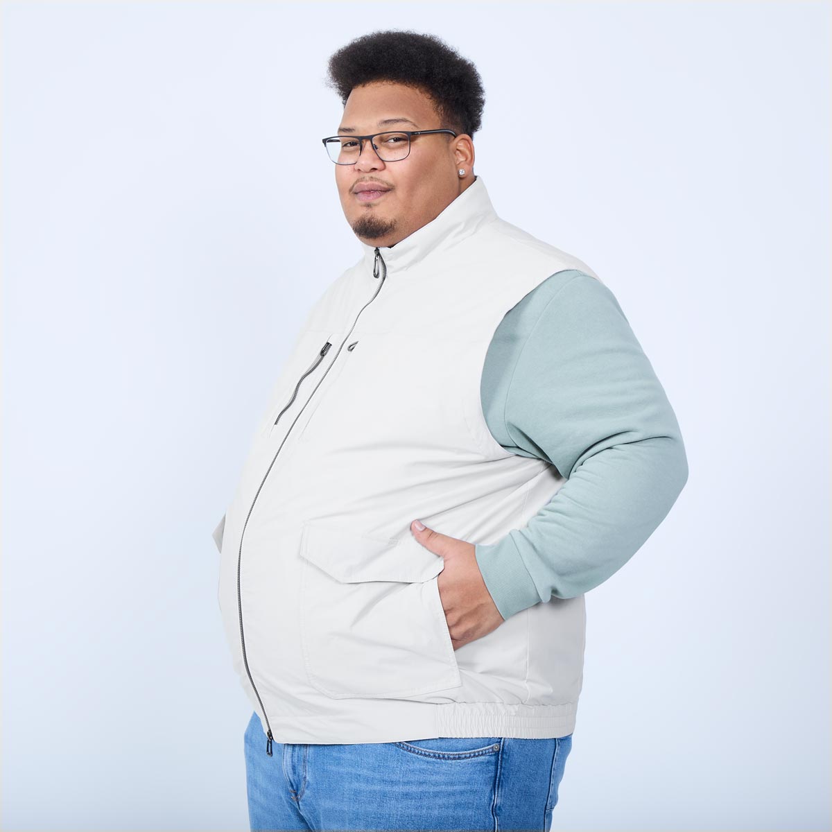 - 2 Brusttaschen mit Reißverschluss