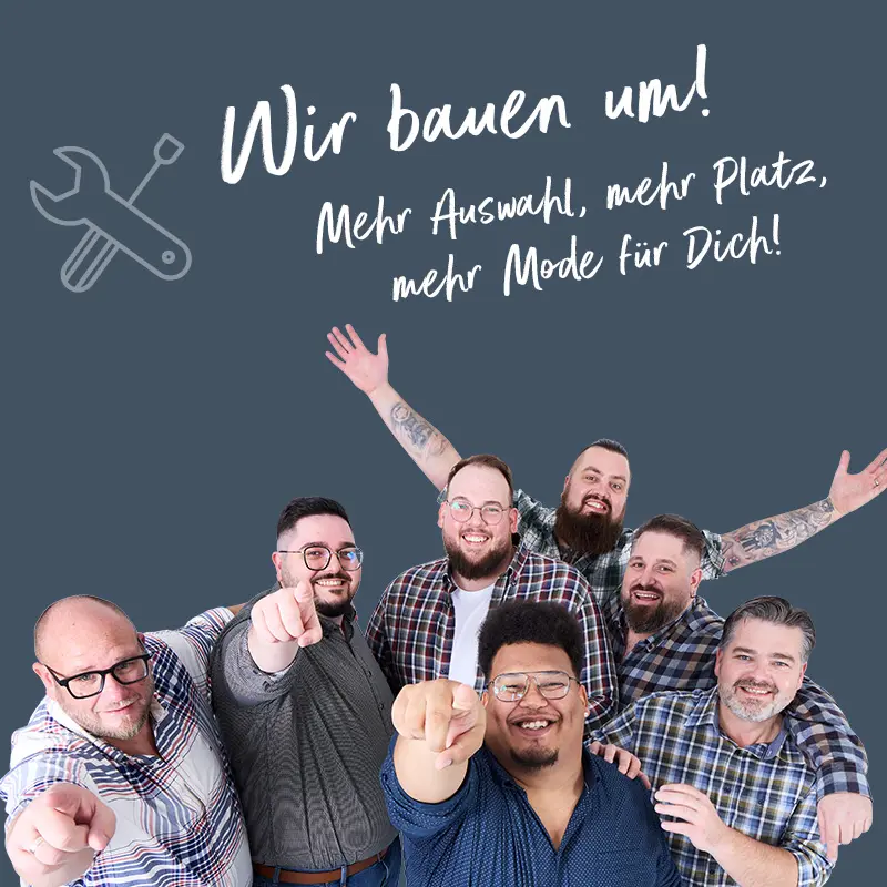 Bis zur großen Neueröffnung im Oktober kannst Du weiterhin uneingeschränkt bei uns einkaufen. Es bleibt alles wie gewohnt – Dein Einkaufserlebnis wird nicht beeinträchtigt. Wir bauen im Hintergrund um, während Du entspannt bei uns stöbern, anprobieren und einkaufen kannst.